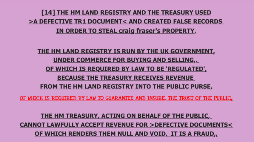 part-2 claim against the HM Land Registry and the UK Government, for blatant theft of craig fraser's private property